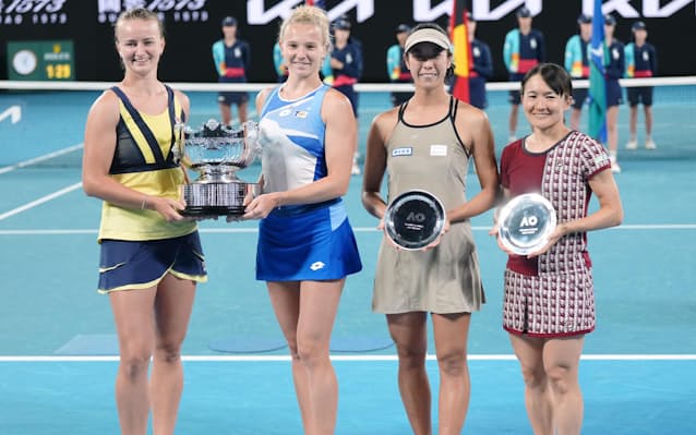 テニスの全豪オープン最終日は29日、メルボルンで女子ダブルス決勝を行い、前回4強の第10シード、青山修子(近藤乳業)柴原瑛菜(橋本総業)組が第1シードのバルボラ・クレイチコバ、カテリナ・シニアコバ組(チェコ)に4-6、3-6で敗れ、四大大会初優勝を逃した。準優勝の賞金は37万豪ドル(約3400万円)。連覇を達成したクレイチコバ、シニアコバ組は四大大会7勝目で、賞金69万5000豪ドル(約6400万円)を獲得した。